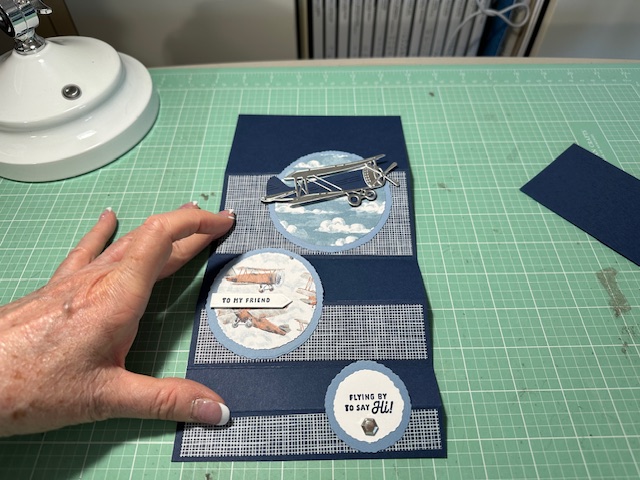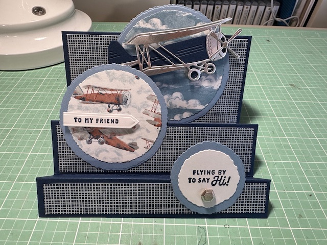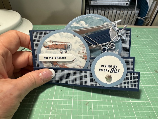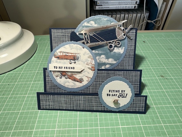 With Father’s Day coming up I will be showing some manly cards to get your juices flowing in making your dad or husband a very cool Father’s day card. This Take to the Sky Bundle 163447 is a great bundle for all things manly. I cased this very cool fun fold from Cheri Stoikouich (Cheri’s Cards) Youtube video posted on 4/9/24. This card is so cool and what makes it so cool is the Take to the sky DSP 163436 which has so many different designs you can just use the paper to make a very fun Card for any man on your list. Enjoy my friends.