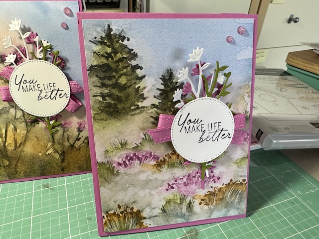 Once again my sister Ruth outdid her self with these very pretty Painted Lavender cards as a door prize for the May SAS. Look at the three differnt cards you can make with this set. Very cool Thanks again Ruth for all your hard work. Love you