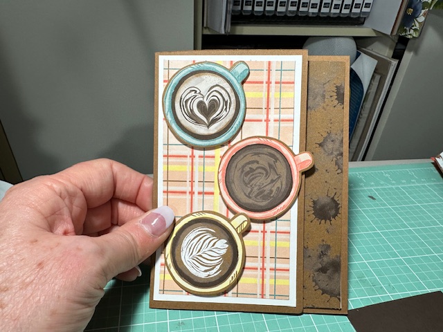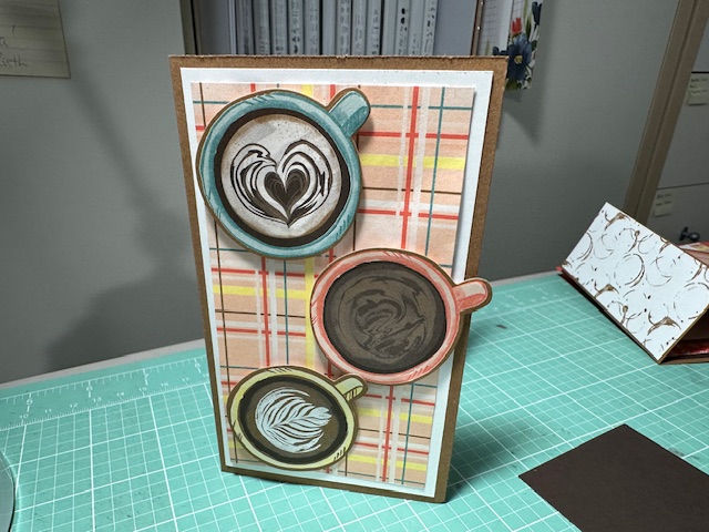 Another Cool Fun fold card that I cased from Stampin on the back porch Blog post on 2/8/24. Latte Love Bundle 163461, A Little Latte DSP 163453, Pecon Pie and Basic White Card stock. The coffee cups on this card were cut out using the DSP and the dies, such pretty colors. Fun card. Enjoy my friends.
