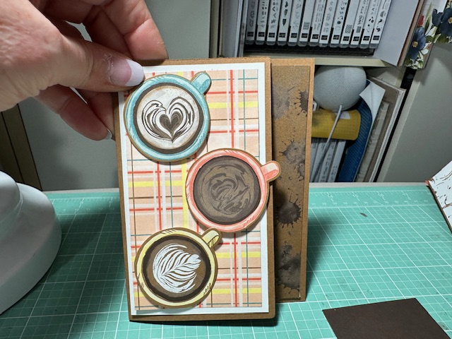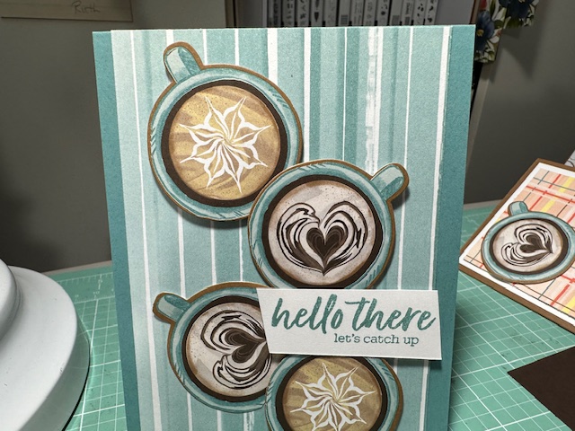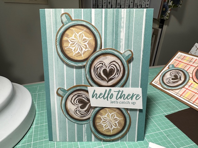 Another Fun card made with the Latte Love Bundle 163461 and A Little Latte DSP 163453. Again the coffee cups were cut out from the DSP with the dies. Such and easy fun card.