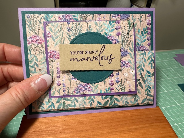 Love this Painted Lavendar stamp set 162594 and dies 162596 (no longer a bundle bummer) that I cased from Ideas from Christen Youtube Video 3/24/24. Such a cool fun fold using the Perennial Lavender DSP for the main part of the card. You can do this with this DSP as both sides of the DSP are great and again Purple colors… my fav. Enjoy my friends.