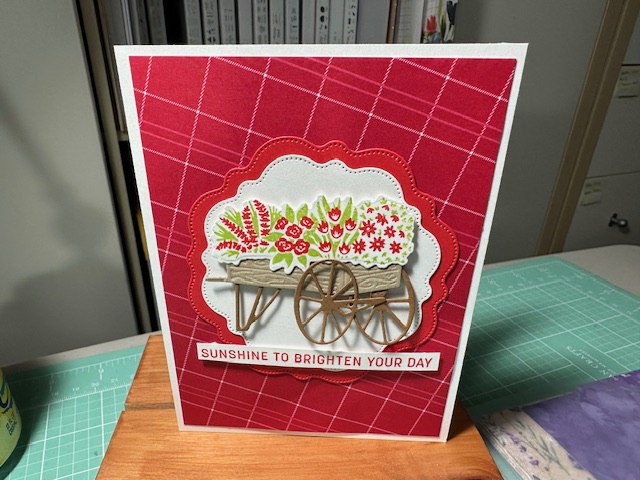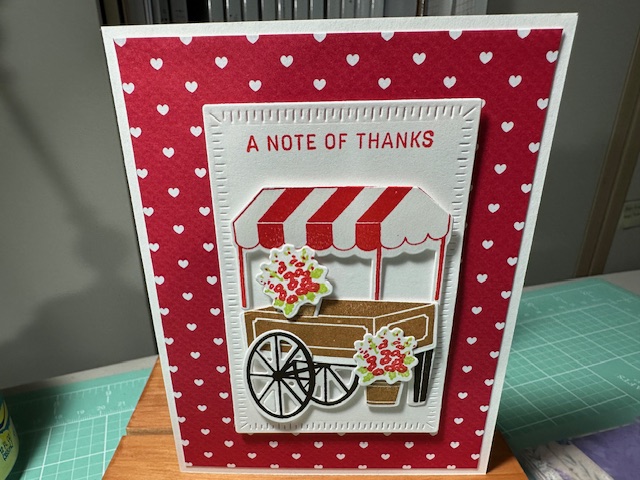 Cased these cards from Irene Bastel Zimmer Youtube Video on 2/17/24 Using the Flower Cart On-line Exclusive bundle. These cards are so pretty made with the Flower Cart Stamp 162776 and dies 162780 from the Stampin Up Onlne Exclusive set which means it only available to purchase from the On-line store and will be around until the items have sell out. Enjoy