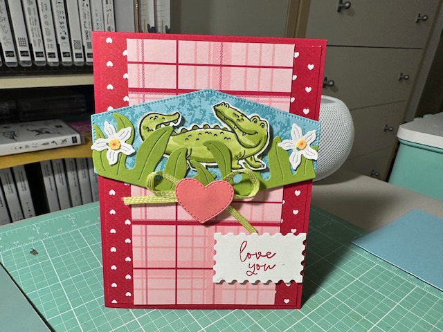 This is card # 1 of 9 made at my Feb SAS that was held today and tomorrow. Such a cute card that I cased from Erica Cerwin’s facebook live on Facebook but you can find the reply on Youtube. Such a cute card using the Jungle pals dies and Most Adored DSP (all free with a $150.00 order during Sale-a-bration that ends at the end of Feb.