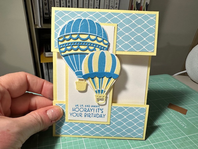 Hot Air Balloon Bundle 162755. Love this set with all the different cards you can make with it as the dies and stamps are perfect to make this cool card.