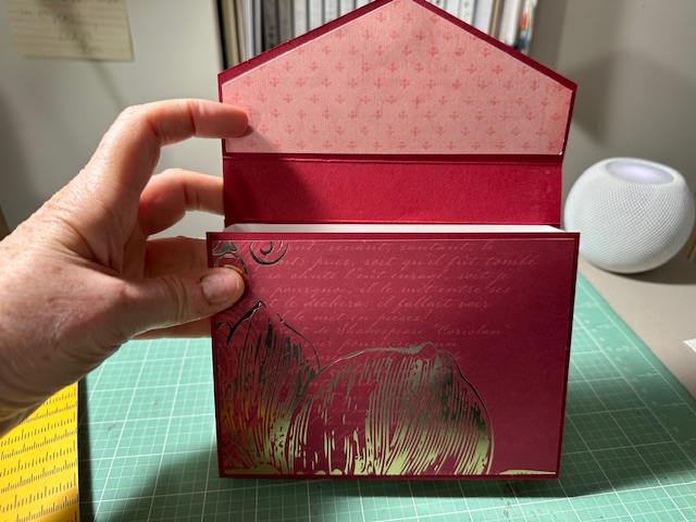 Are these cards and the beautiful box not the greatest. My beautiful friend Mo (who moved out of CA to CO) was my first friend I ever brought to one of our stampin events we used to do with our local SU demo friends years ago (at least 18 years ago (before I did my own SAS events) anyway I need to have some friends at these events and Mo and my friend Carrie both came with me and Carrie did not get the stamping bug but Mo did and has been a loyal friend and customer for years. Mo moved to CO (and we all miss her as she never missed any of my SAS events) but now with her move she misses being there by always get a card pack. Anyway, for my birthday this year I got a package from Mo and this box and cards were inside. I love them and the pictures to do not justice, you will have to see it in person as the box and cards as so elegant. Mo now sells these at a craft fair and did every well this year and so proud of her. She loves SU and creates other great cards and gifts as she is very talented. Thanks Mo for this beautiful box and set of cards, you outdid your self. Love and miss you.