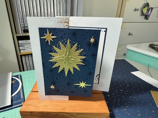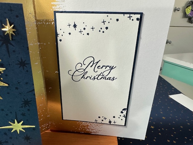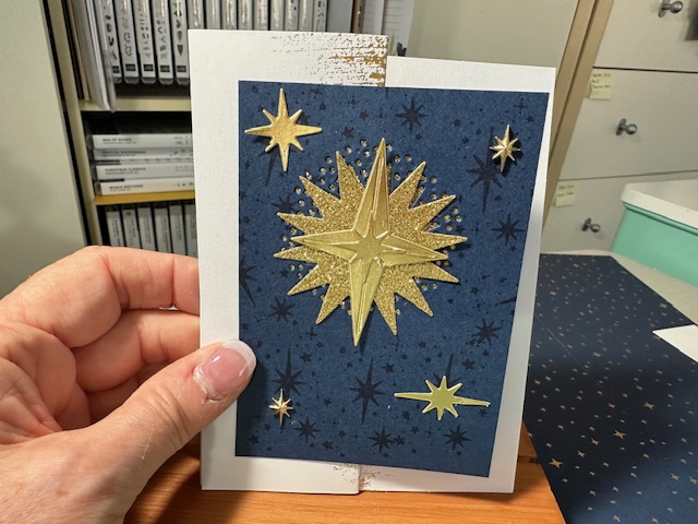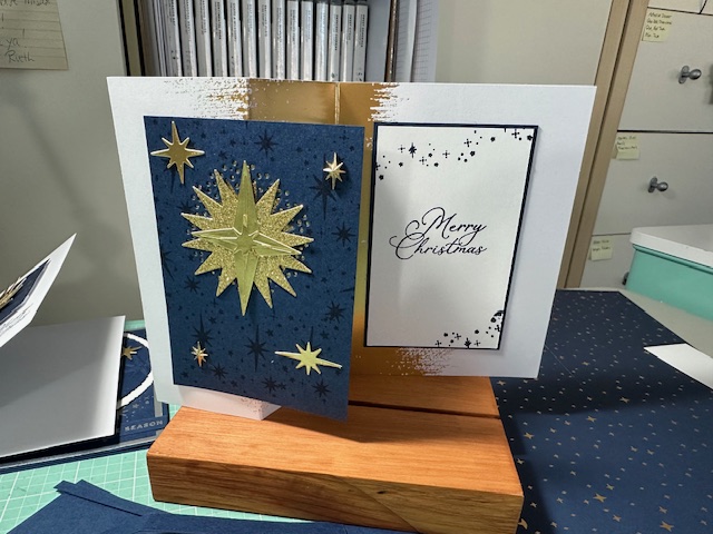 Love the Stars at Night Bundle 162007 and the great cards you can make with this set. I cased this very pretty Fun Fold card from Handmade by Julia Quinn from a Pintrest post I saw. I loved it so much I made it as a sample for my Christmas SAS and my blog. These Brushed Gold cards and Envelopes 162177 are awesome as you get 20 of them including the very pretty envelopes.