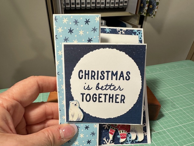Love these fun fold cards that I cased from 4 different demos using the Beary Cute bundle 162023 and the Beary Christmas DSP 162015, Snowflake Sky 3D embossing folder. Such fun cards.