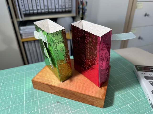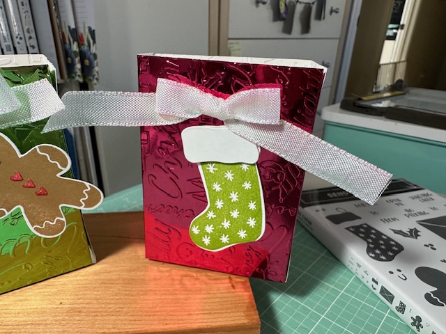 Don’t these just scream ..SO CUTE… yes that is right. I love these and I got the idea for this boxes from Tammi White video where she made a card out this Melon Mambo & Granny Apple Green DSP 161953 and cutting them out using the Tricks & Treats Dies 16225, and stamped the images and cut them out using the Sending Cheer Bundle 162053. So easy to make and they make the most special box ever. Love these and hope to make more for the holidays for gifts.