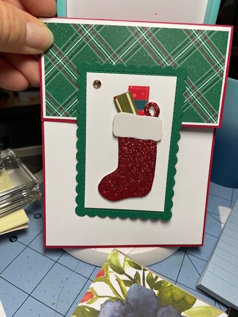 Friday Morning Stampers at 9:30 until 2. What a great time we had with session 1 of my Christmas SAS. Only 2 more sessions to go… onward we go..
