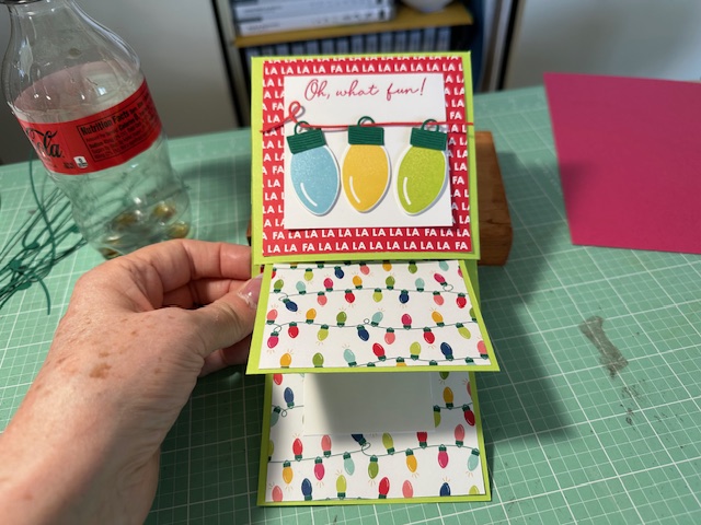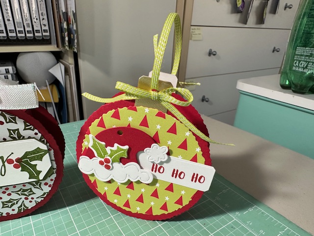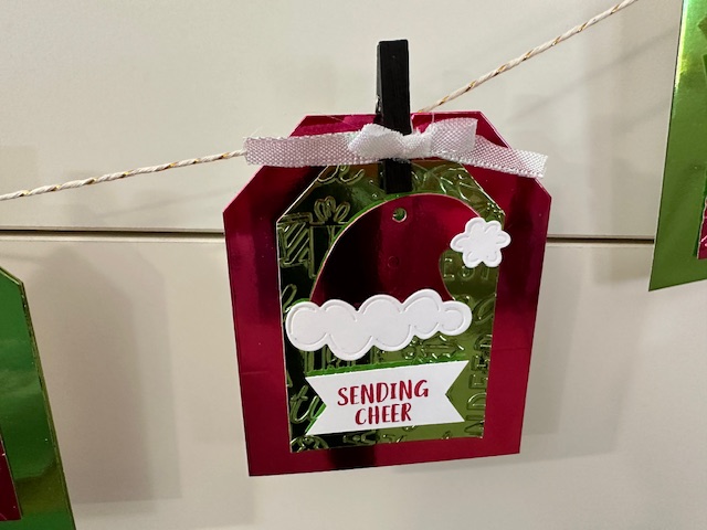 Is this Banner not the cutest. I got the idea for this Banner from Debra Harrison Youtube vido and took her idea and made my using the Melon Mombo & Granny Apple Green 12 x 12 DSP so shiny and bright I loved it. All the other stamp and cut out images where from Debra’s Banner. So cute and so easy to make using the Countyside Dies and then the sending Cheer bundle. Love this and a few of my special friends will be getting one of these for Christmas. I also made Debra Original one made 3 of them and gave them away as a special door price to 3 special people at my Christmas SAS. Fun gift and fun to display.