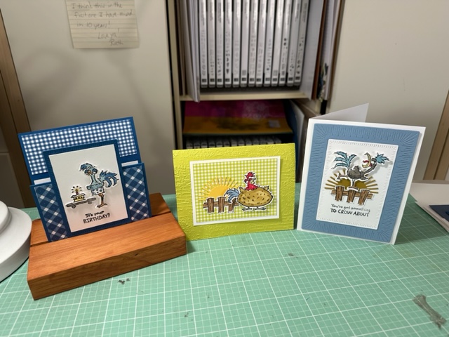 Love the Hey Chuck bundle 161553 as it makes such great cards. I made these 3 very cute cards as a door prize for my July SAS. The Card on the left is a gift card holder, cool right. I love this bundle as you can make so many cute card. Love the color and the designs. Hope you do to.