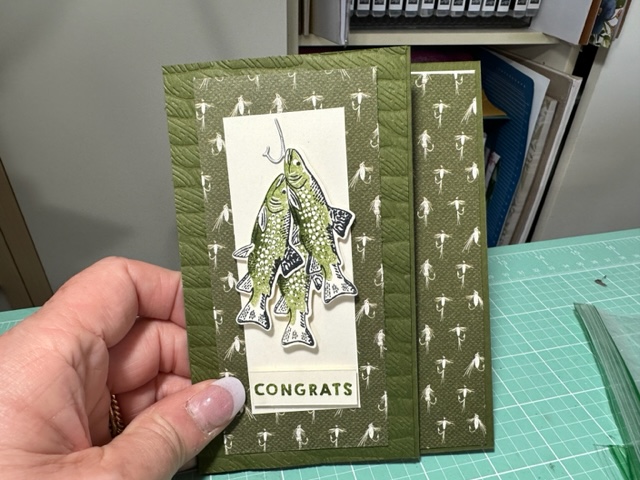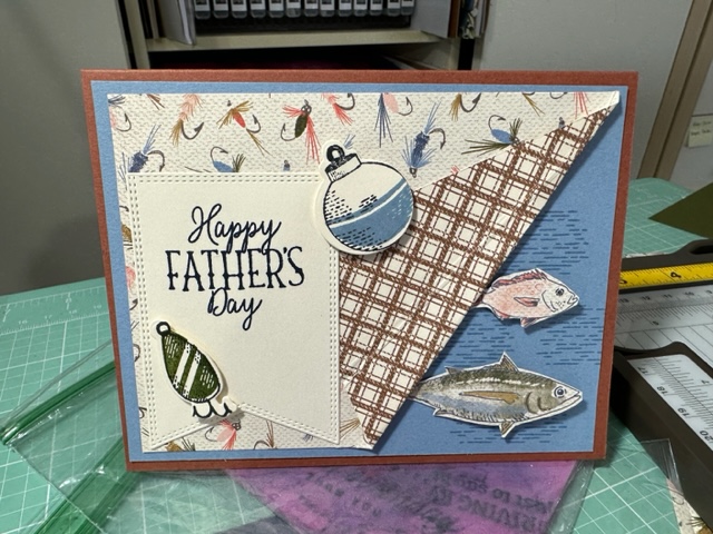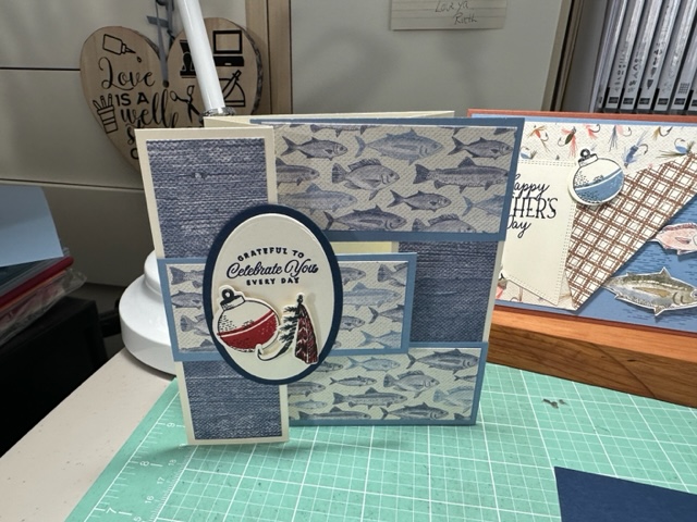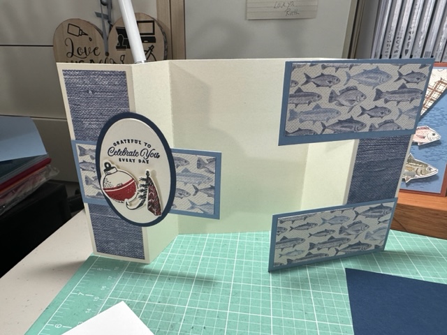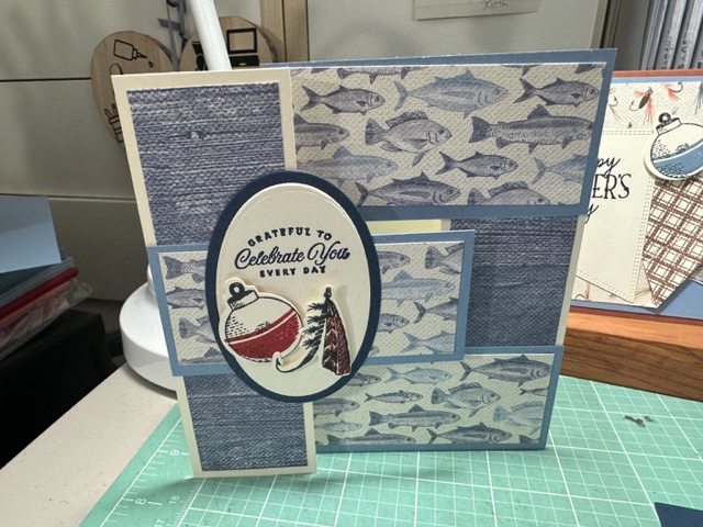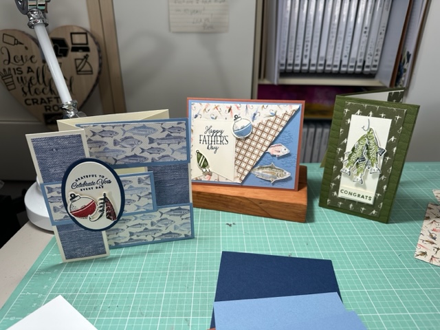 I just love this Gone Fishing bundle as it makes such great man cards. Gone Fishing bundle 161542. Two of the cards are fun folds and one has a cool fold on the front. The Fish card on the left and the middle card I got the idea for these 2 cards from 2 other demo’s but can’t remember who, sorry. The card on the left I got the idea from another demo and then made my own version into a fun fold. I love this bundle as you can do all kinds of great cards with the stamps, dies and the designer series paper. Glad I could share these card with my stampers.