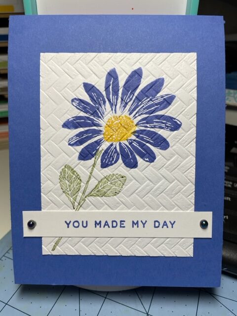 Paper: Thick White Card Stock 159229, Boho Blue 161724, Fresh as a Daisy Designer Series Paper161289