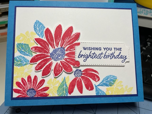 Supremely Stamp Set 161560. Love this card and a total case from Angie from Stampinwithamore from her Youtbube video around June 9 2023. She made a box with this design but I took her idea and made mine a card. Love it and so bright and fun.