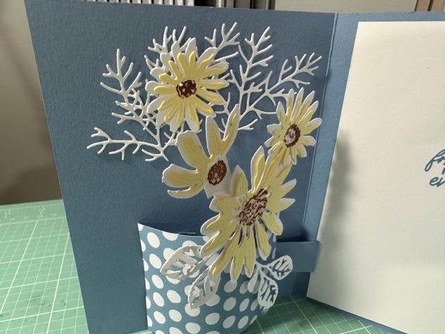 Very cool Flower Pot card that I cased directly from Stamping with Kelly Youtube video on 4/30/23. Its such a cool card and the pop up effect is so cool. Check out her video for the measurements and directions on this card, its so fun and what a surprise for someone to receive this fun card in the mail.