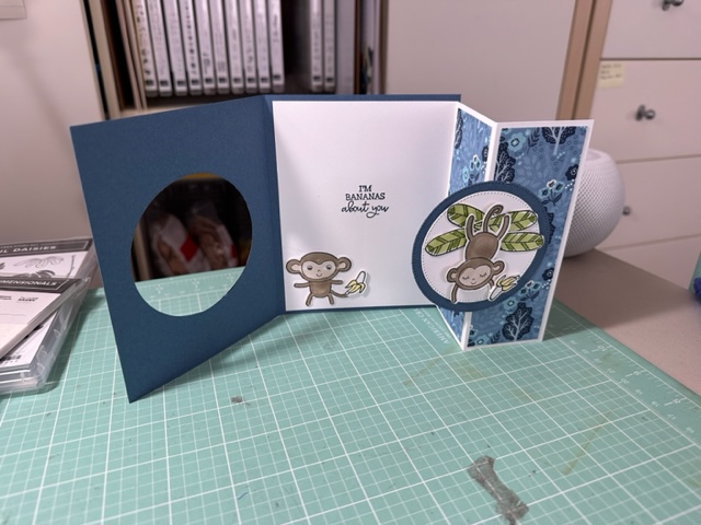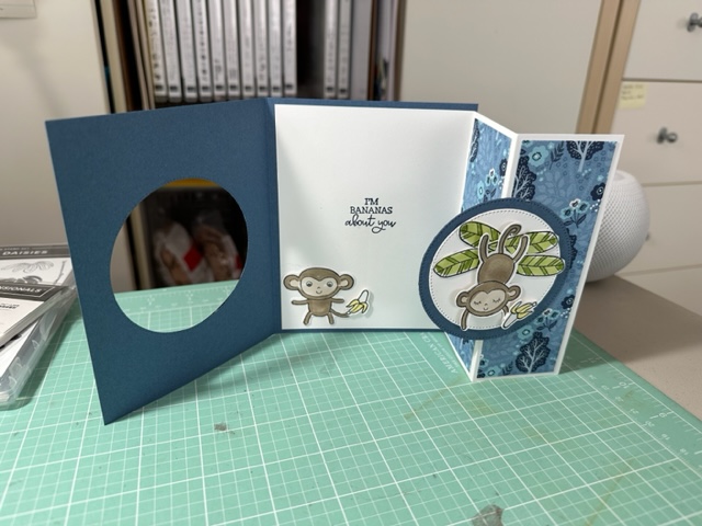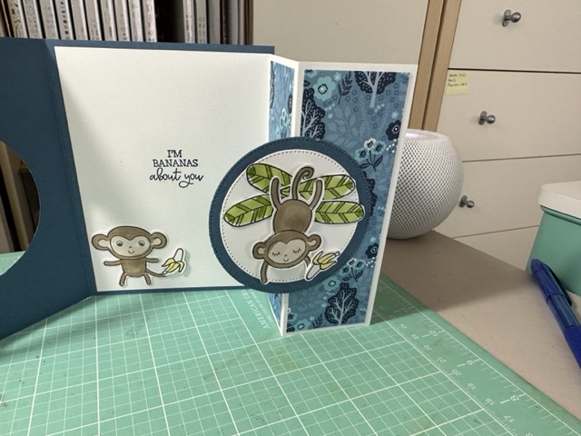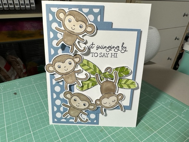 Love, love, love this fun fold and cutest card. I cased this from Dawn Griffith Youtube video posted on 5/3/23 from one of her facebook lives. It was so cute I had to make a sample for the SAS and post it on my blog. What a creative cute way to show off the Little Monkey bundle 161379. Check out her blog on how to make this card.