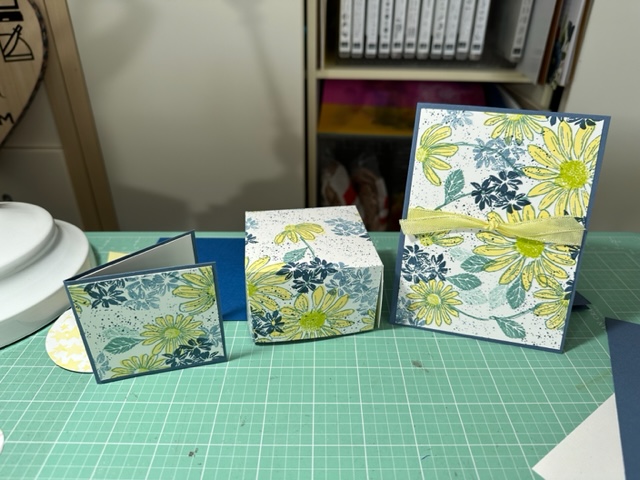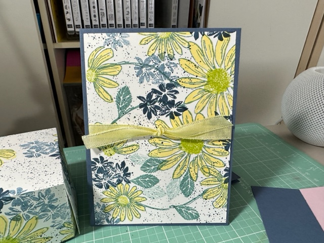 I loved this video when I saw Artful Stamping with Ruth’s Youtube post on 5/4/23 and knew I had to make this paper and boxes to show what you can do with this Cheerful Daisy stamp set and with a little ink create a very pretty patten. I loved it and it was so easy when you follow her video. Check it out, you will have so much fun and can then create your own paper.