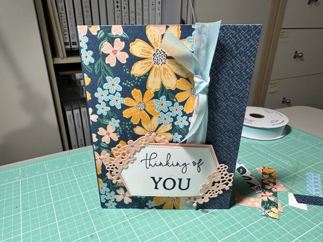 Made this card using the Greatest Journey bundle 160594 and cut the cute tent and clouds out of the die and stamped the branches onto the card. The Enjoy the Journey DSP 160586 did the rest. I cased this card from Stamping Journeys Youtube Video on 2/11/23 where she showed samples of this card.