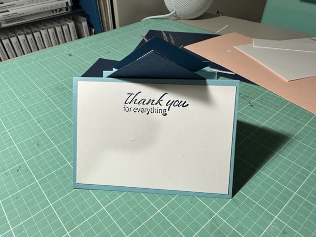 Balmy Blue 4 x 5 ¼ emboss and then cut off on the 5 ½ side at 4, ¾ x 1 ½