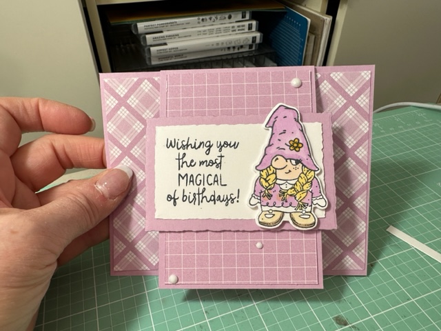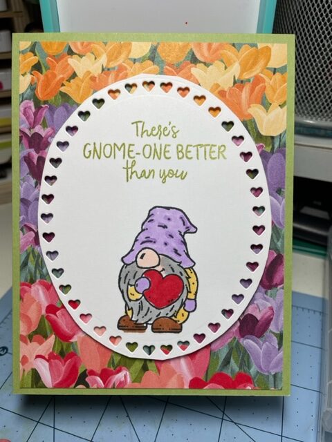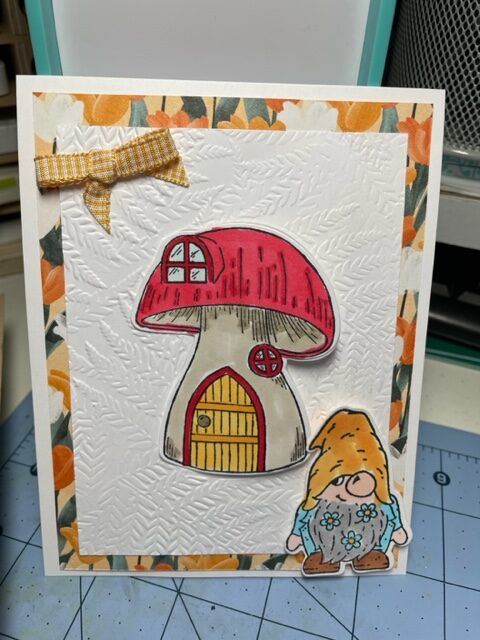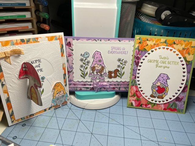 Friendly Gnomes door prize cards made from my sister Ruth. These are so cute and loved the 3 different cards she made especially the one card on the left where the Ghome home door opens. Very cool. The Door prizes are 3 cards that the girls receive at my SAS when the attend. My sister is a wonderful person who make these door prize cards from me in Florida, even with the limited time she has to make them so I appreciate them so much.