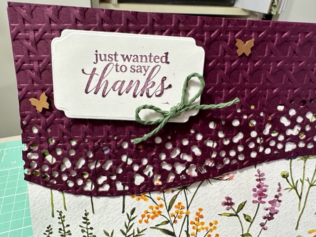 Accessories: Three Twine Combo 160597, Something Fancy Dies 160424, Brushed Brass Butterflies 158136, Cane Weave 3D embossing Folder 160580, Dimensionals 104430 & 144108