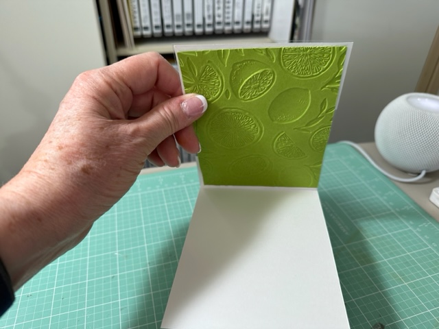 Granny Apple Green 4 x 5 ¼ – emboss with Sweet Citrus Hybrid embossing Folder