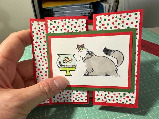 North Pole Mischief stamp set 159770 again is a cutest set that I loved and found great cards to case to show how to use this set and make great gift card holders and fun folds. Loved these cards as they were so fun to make.