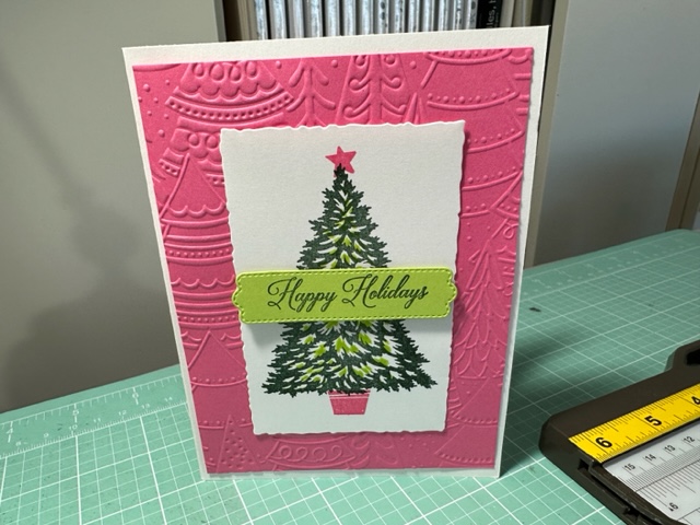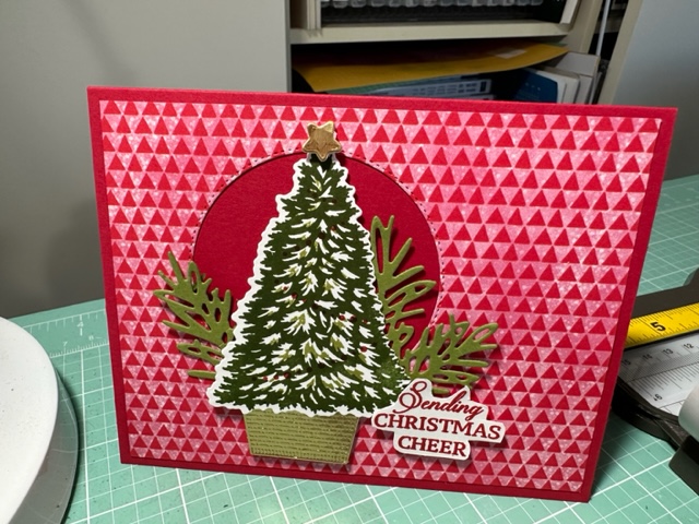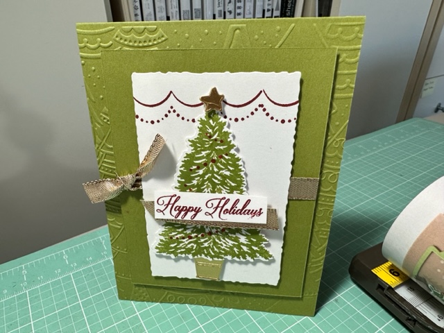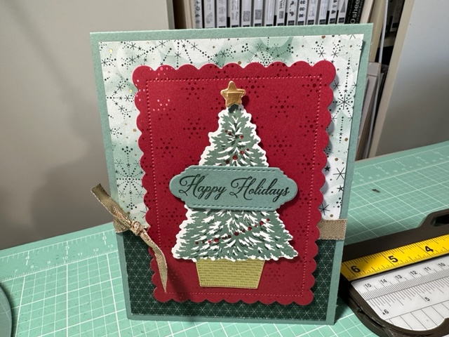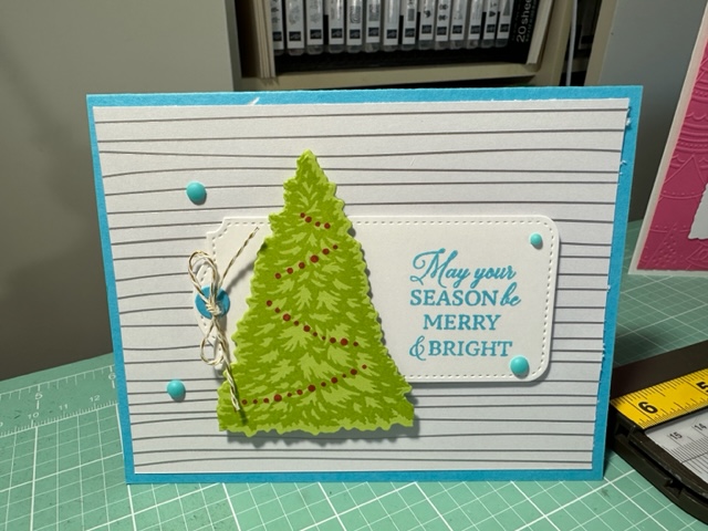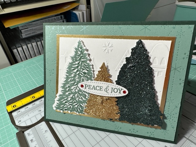 Trimming The Tree Stamp set 158972 is on pg 43 of the Main Catalog and was almost a set I missed until I saw sample cards made with it, then Stampin Up had the coordinating dies for this set for a special time and I got them and what a great bundle this was to have. Cuts out the tree and all other items. I cased a few of the card above but the others were my fun creations.