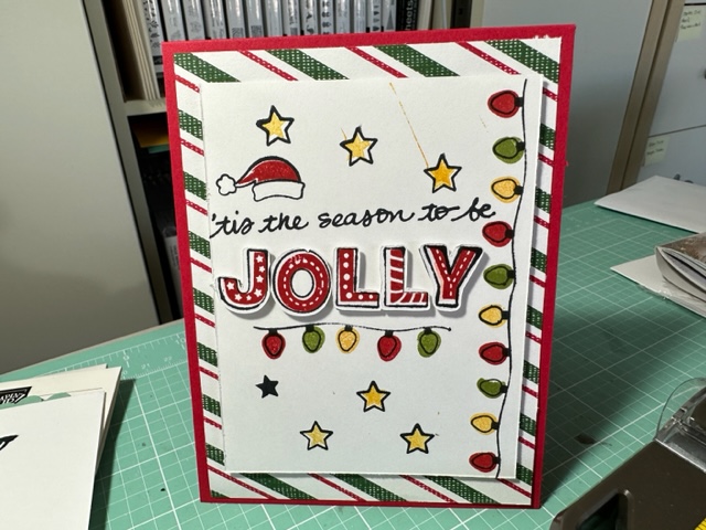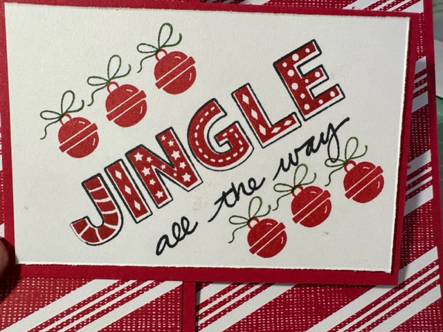 Love, Love, Love this quick and easy Jingle cards. I cased three of them listed above and then created my own versions using the Jingle, Jingle, Jingle stamp set 153438. Such fun card and when you cut out the letter they make aweseome fun cards. Love these and the bright colors. Such happy cards.